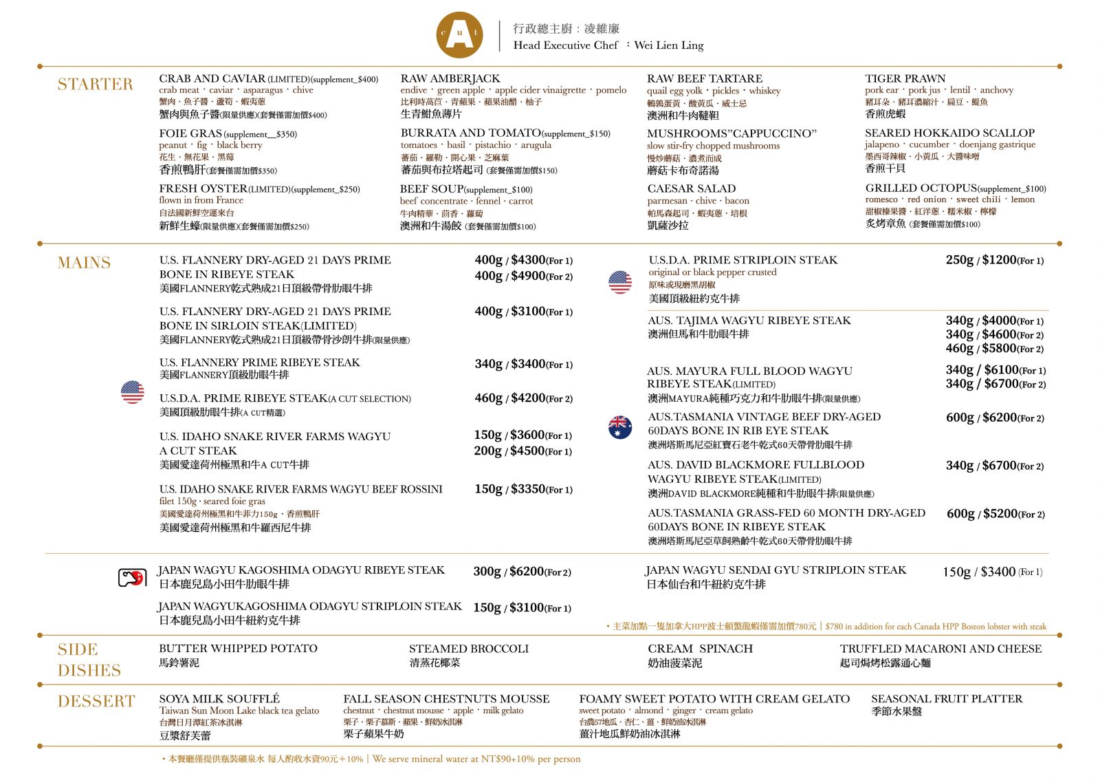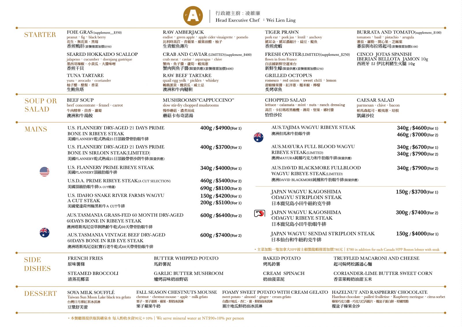 國賓A-Cut牛排 一直是我的口袋名單尤其是 A-Cut 這名號真的是如雷貫耳響叮噹時常會有朋友或粉絲問我 那你吃過國賓A-Cut牛排嗎 終於今天我可以來回答這個問題了 好像是去年吧國賓有宣告A-Cut牛排館重新裝潢暫時休館三個月後重新出發所以對我來說不但是第一次來到國賓A-Cut. 喝酒不開車未滿十八歲請勿喝酒 日漫畫家弘兼憲史將a cut畫入會長島耕作漫畫中a cut已成為許多日本人來台必吃餐廳 A CUT牛排菜單Menu 午餐每人899元起晚餐每人1299元起可享排餐頂級Semi-Buffet小資族跟家庭來吃也不會太傷荷包喔另外晚餐時段現場加價400元還可享有氣泡酒無限暢飲. A Cut的最新菜單與價格請參閱A cut的官網 菜單點我 與五年前第一次來相比價格漲了不少啊.